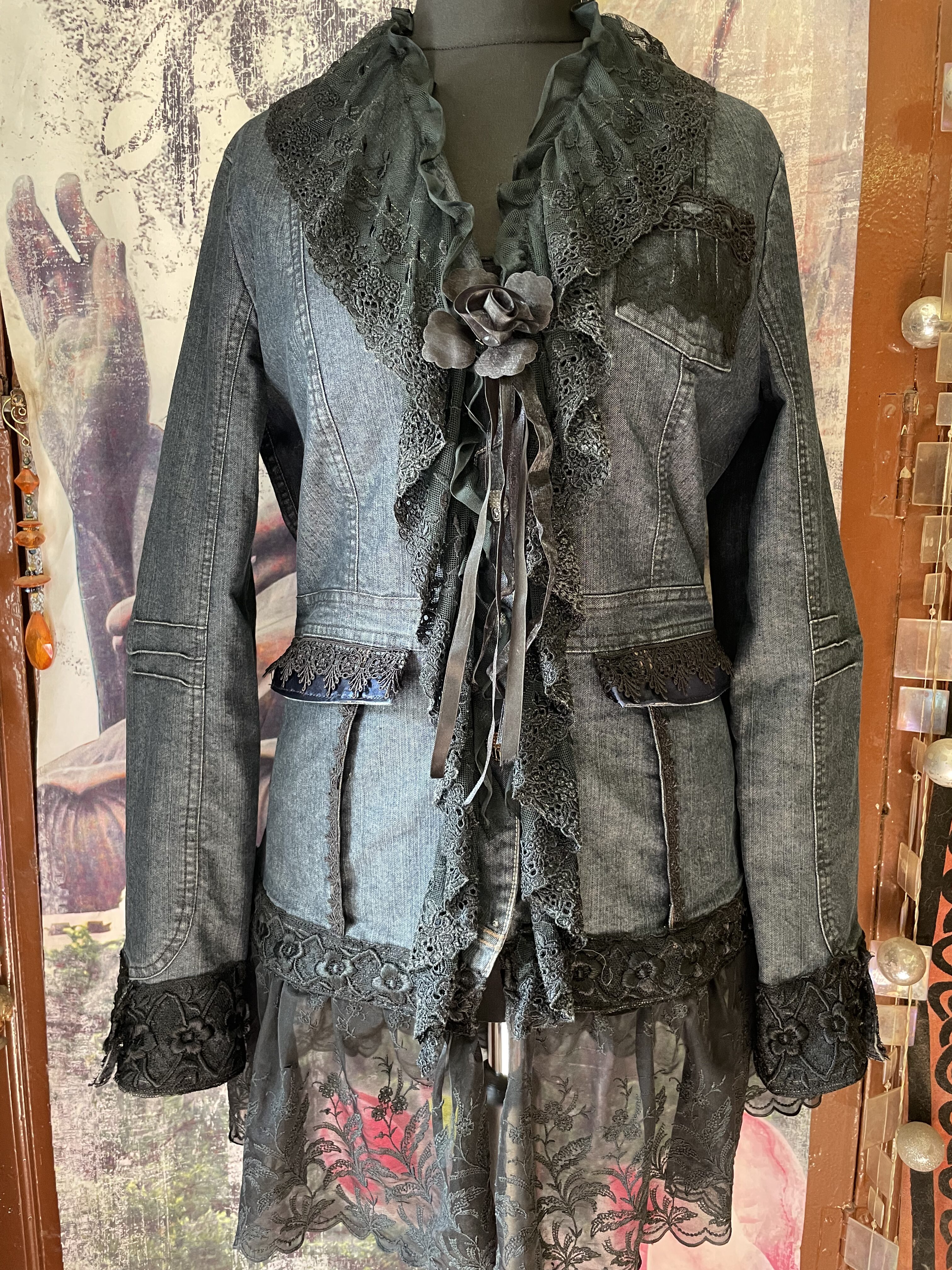 Col en fourrure vieux rose et tissu brodé