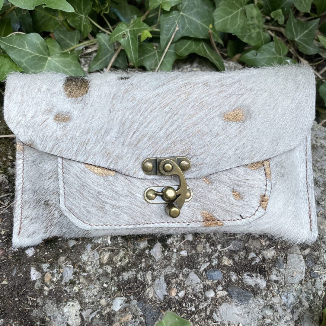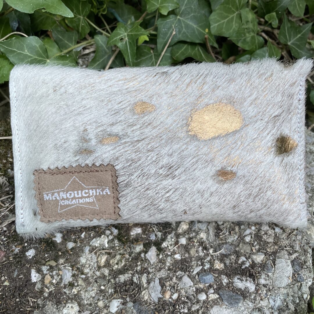 Pochette à tabac cuir de vachette poilée blanc et doré avec intérieur doré